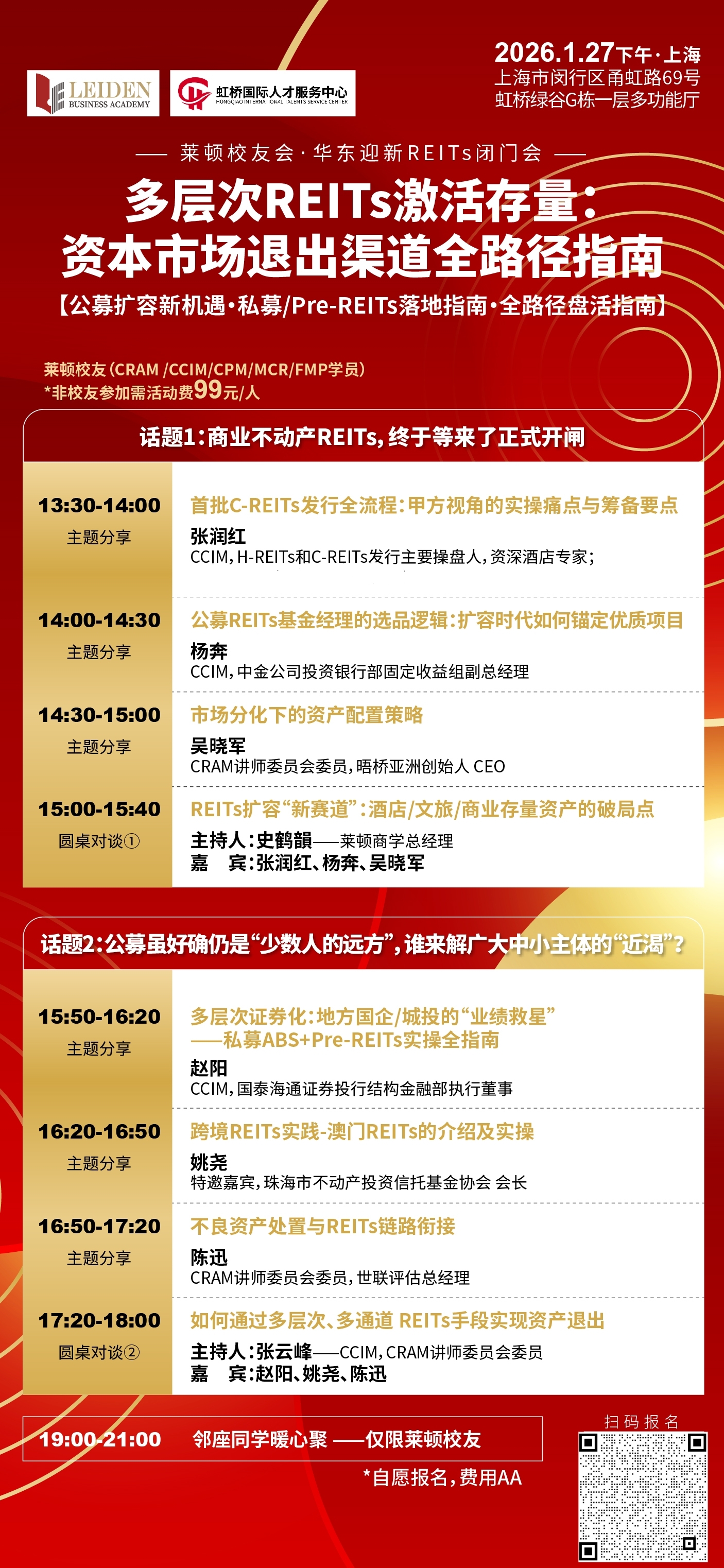 莱顿校友会2026华东迎新REITs闭门会/2026/1/27上海