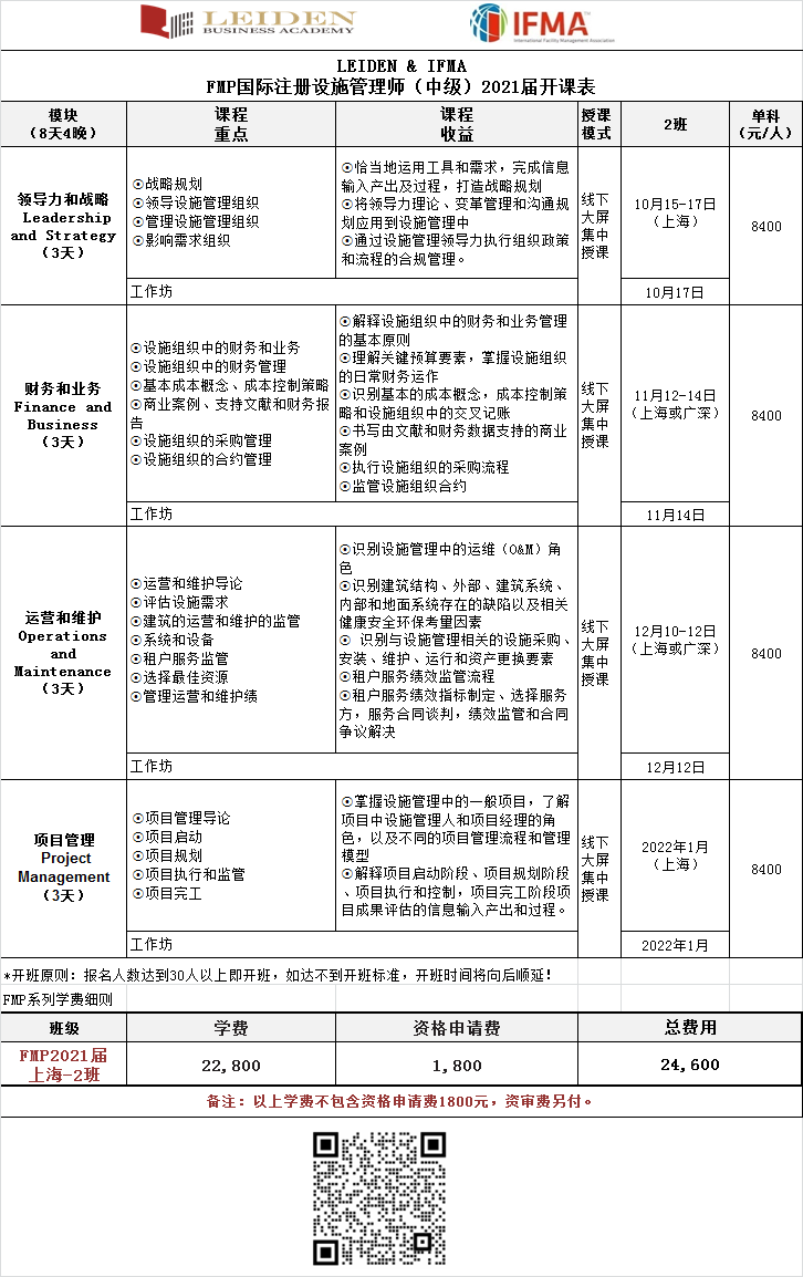 开课通知 | FMP国际注册设施管理师(中级)
