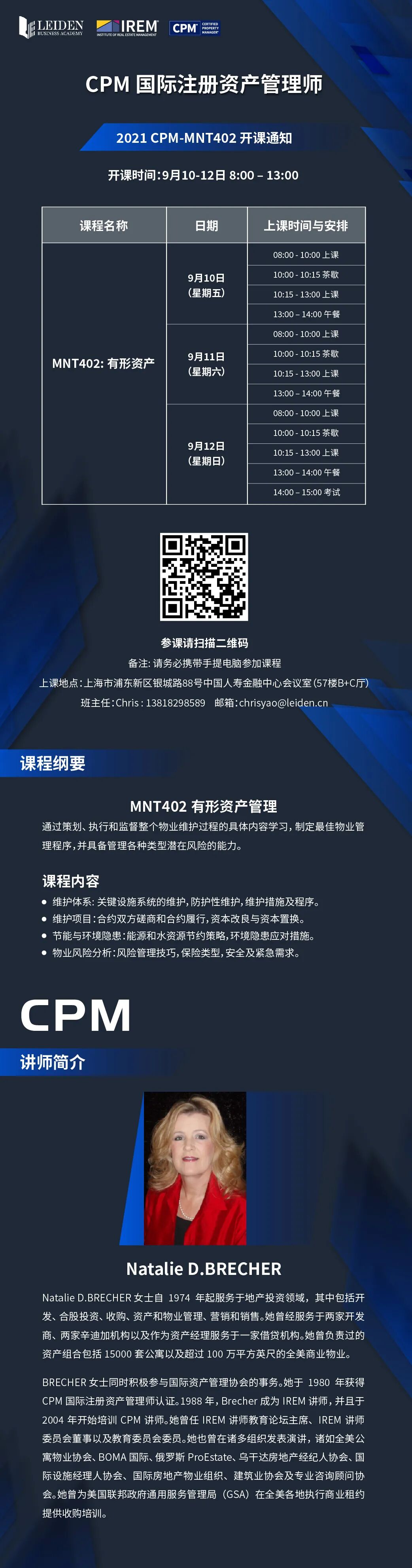 CPM国际注册资产管理师|上海 09月10-12日(线下)开课通知
