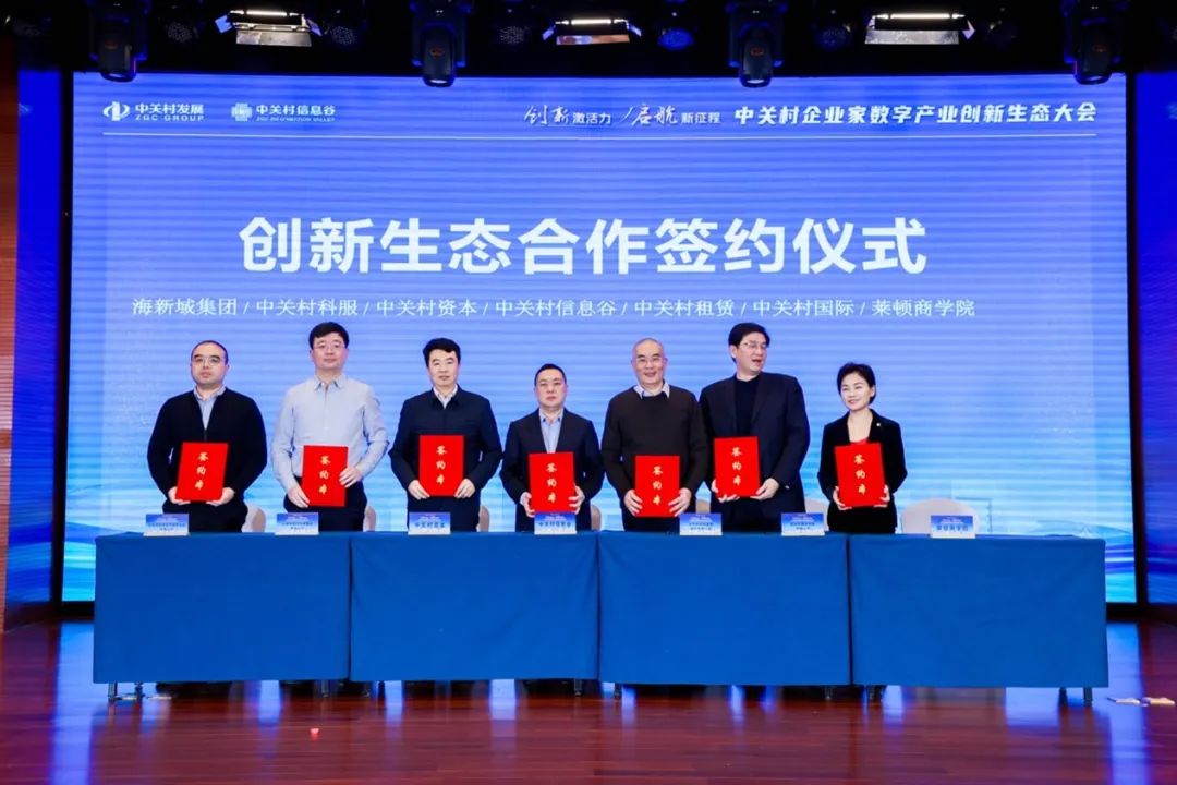 在本次大会上,中关村信息谷完成了与产业链上的中关村资本、中关村租赁、中关村科服、中关村国际、海新域集团、莱顿商学院六家机构的战略签约,这是我们共同迈向数字产业新纪元的坚实一步。通过这次合作,莱顿商学院将与中关村的创新力量紧密相连,它不仅是莱顿商学院与中关村产业园信息谷合作的起点,更是双方共同推动中国产业园人才发展的重要里程碑。