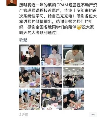 突破职业瓶颈,拥抱长期成长可能。翻看学员朋友圈,除了大考的“挑战性”,更多的是对课程的深度认可与不舍: