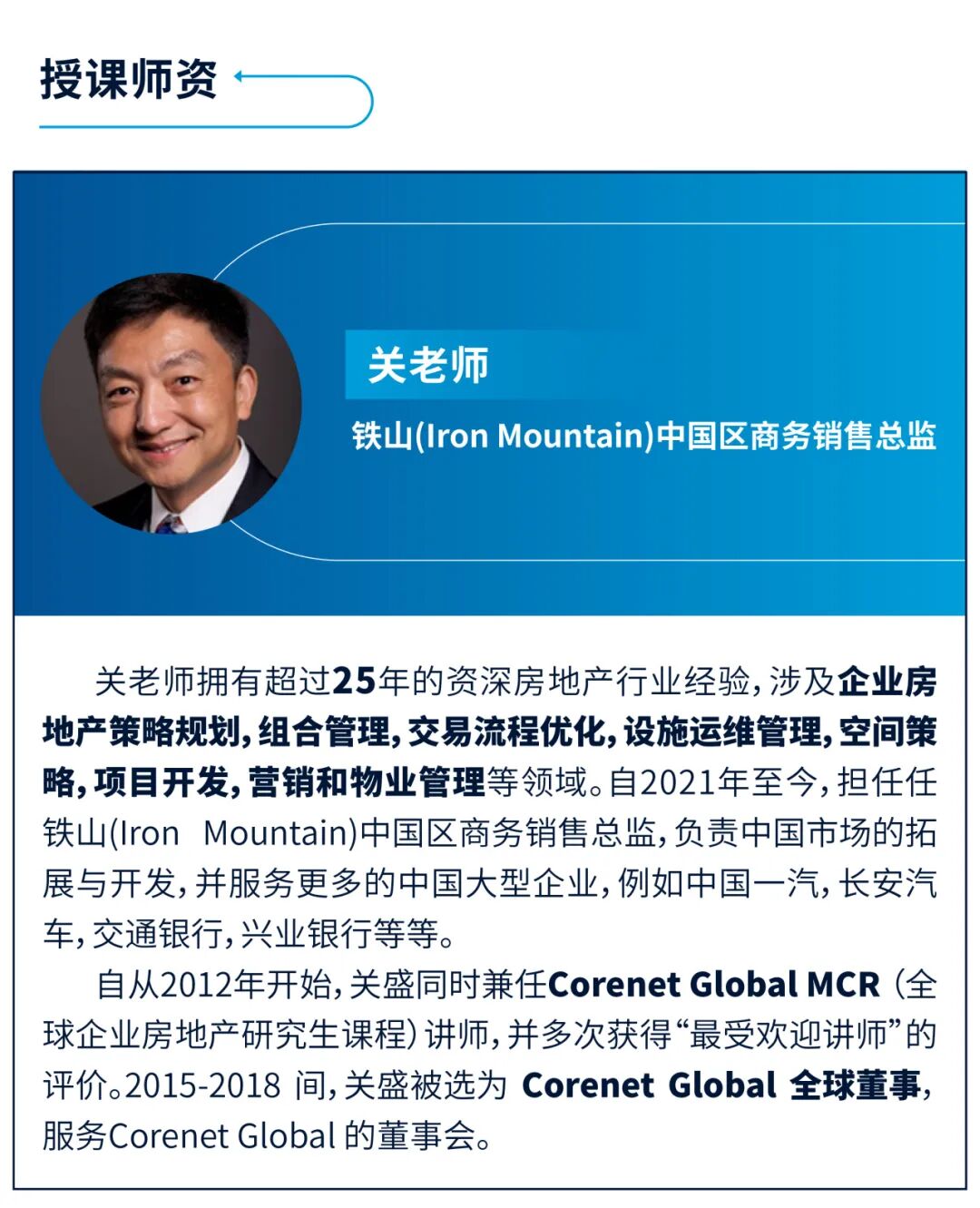 本课程是CoreNet Global的MCR(Master of Corporate Real Estate)核心课程,旨在通过为期三天沉浸式学习,帮助学员系统整合企业不动产(CRE)领域关键知识与实践技能。课程以“理论-案例-实践”三位一体模式展开,涵盖商业模拟、领导力与人才管理、服务交付、组合管理与 workplace(工作场所) 战略等核心模块,并特别融入后疫情时代混合办公趋势、服务外包模式创新等前沿议题。