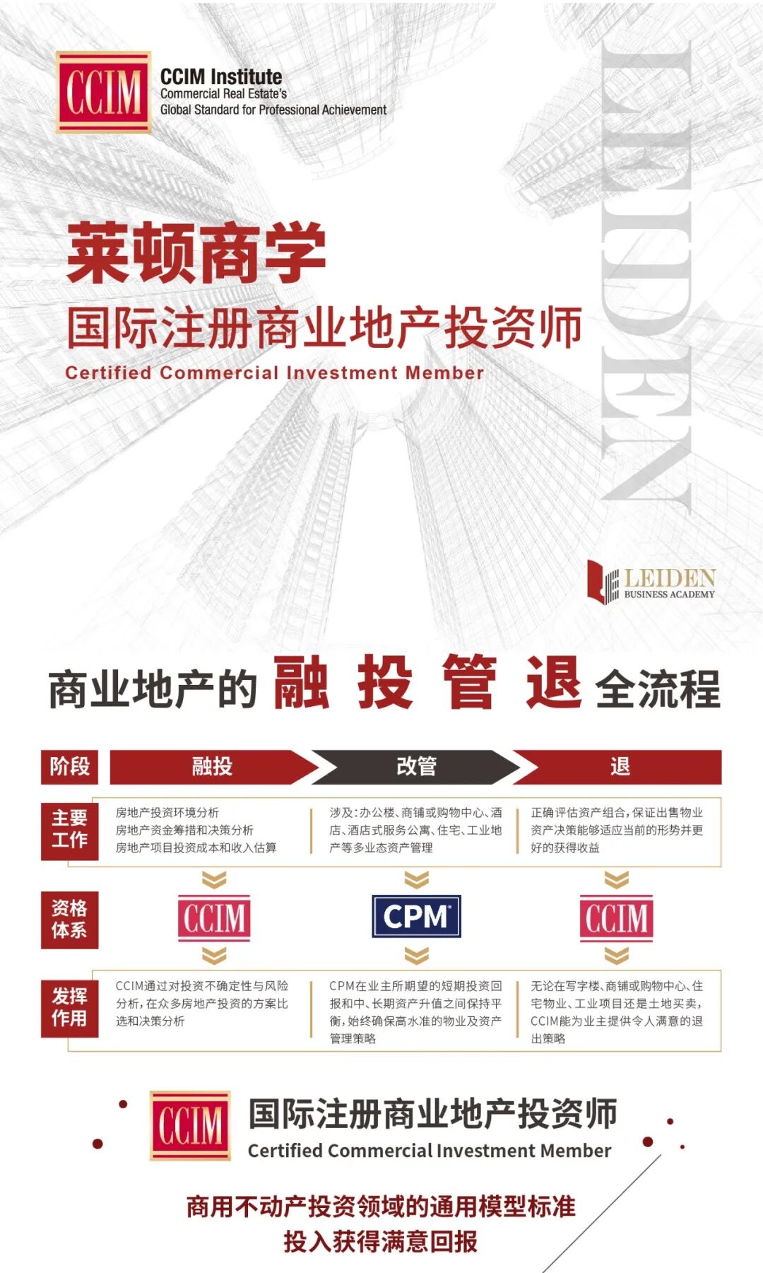 【报名开启】CCIM国际注册商业地产投资师——使您的投入获得满意回报
