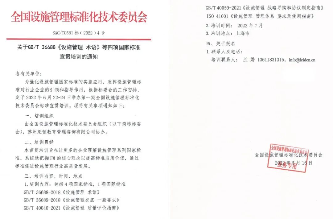 设施管理国家标准推动指导师系列课程