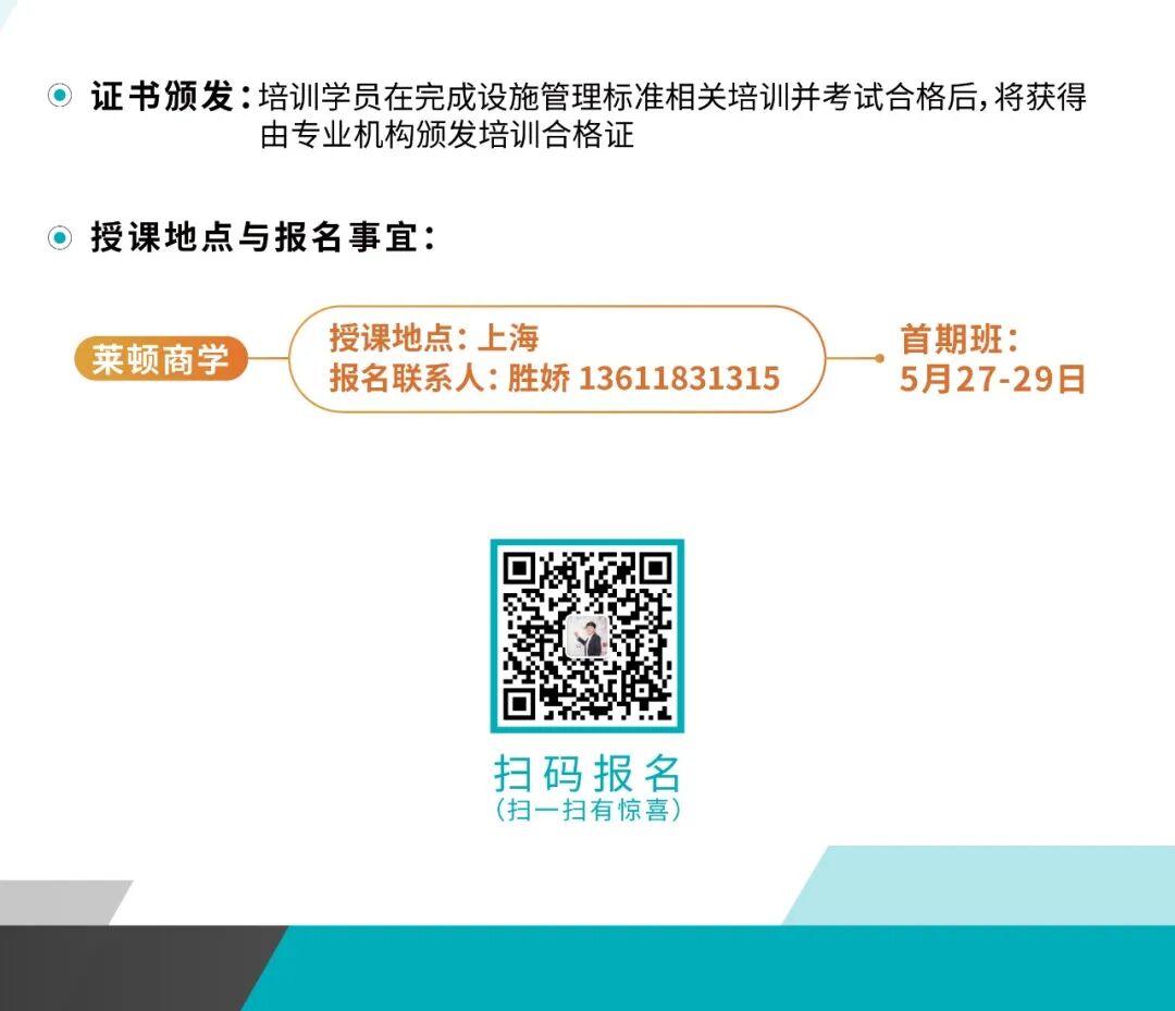 【中国首期】设施管理国家标准推动指导师系列课程·05月27-29日上海